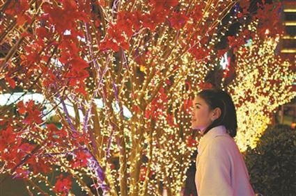 火樹銀花不夜天,流光溢彩呈繽紛?!敖衲甑囊咕罢嫫涟。 蓖钒⒁毯偷窃鍪迨逋盹埡髱е鴮O女來到將軍橋散步,在自己的家鄉(xiāng)欣賞到如此美妙的景色,登增叔叔忍不住夸贊。此時,將軍橋道路兩旁的綠化帶在彩燈的映襯下輪廓畢現(xiàn),與玻璃棧道上的光影交相輝映,城市美景盡在其中。