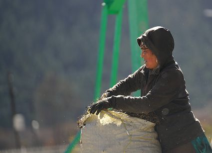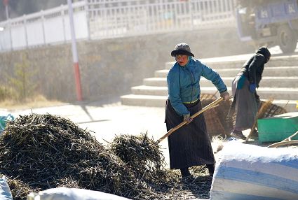 一群孩子會(huì)準(zhǔn)時(shí)來(lái)小二樓叫我,要去密林,要去山岡,要去尋找?guī)в薪?jīng)文的瑪尼石,還要去那個(gè)神秘的洞頂。比孩子們更準(zhǔn)時(shí)的是掛在小二樓上的四個(gè)大喇叭,鳥(niǎo)雀剛醒來(lái),廣播就開(kāi)始了,就必須要起來(lái)了。穿過(guò)巷道,和打豆子的人們一起享受勞動(dòng)的幸福。我們?cè)谝黄?,等待著下午的廣播,因?yàn)閺V播會(huì)給我們帶來(lái)無(wú)盡的喜悅。