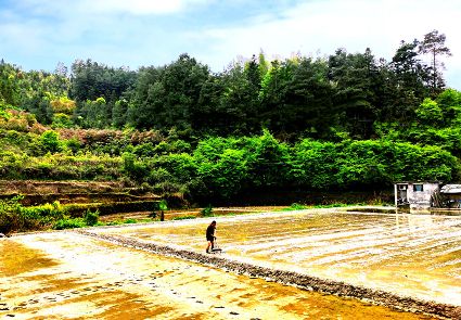 “布谷,布谷”,布谷鳥(niǎo)一聲呼喚,田野沸騰起來(lái)了。有人在一丘丘不規(guī)則的水田,撒播稻種;有人在屋后的坡地搭好竹架,栽上一線線瓜秧。