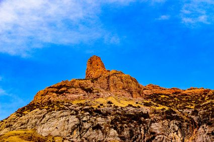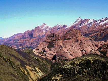 位于四川省西部雅礱江河谷的新龍紅山丹霞地貌被稱為“雅礱秘境”“地之肚臍”,該丹霞地貌正處于壯年期,整體海拔大多在4200米—5000米之間,超過(guò)5000米的山峰有10余座,高差大于800米,屬于典型的高寒型丹霞。