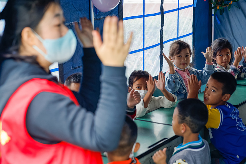 在社會各界搶險救援隊伍的鼎力支援下,災(zāi)區(qū)的道路、電力、通信等逐漸恢復(fù),生活逐步走上正軌;在愛心志愿者的安撫關(guān)心下,孩子們走進“帳篷課堂”,朗朗書聲、歡快笑聲日漸增多。