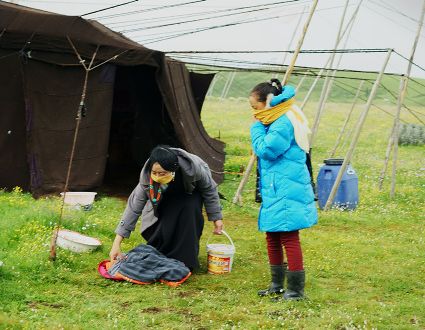 達(dá)珍和她的丈夫是我州爐霍縣宗塔草原上普通的牧民,育有一對(duì)兒女,都在縣上讀書,小兒子上小學(xué),大女兒讀初中,放暑假,11歲的女兒回到了牧場(chǎng),幫助阿爸、阿媽放牧。女兒的到來(lái),讓達(dá)珍家每一天都充滿了歡笑,7月中旬的一天,筆者來(lái)到了這里,用像機(jī)記錄了達(dá)珍的一個(gè)早晨,那是一個(gè)朝霞滿天的開始。 郭昌平 攝影報(bào)道