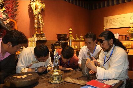 本屆非遺節(jié)期間,我州特色展館向游客展示了格薩爾彩繪石刻、藏族金屬鍛造技藝、藏文書(shū)法、噶瑪嘎孜畫(huà)派唐卡、阿西土陶燒制技藝、藏族牛羊毛編織技藝,南派藏醫(yī)藥等國(guó)家級(jí)、省級(jí)非遺項(xiàng)目。在歷時(shí)9天的活動(dòng)中,我州的非物質(zhì)文化遺產(chǎn)傳承人帶來(lái)了數(shù)百件非遺手工藝精品。大量的手工藝商品聚集展館的展示區(qū),供參觀者挑選,有些非遺傳承人還在現(xiàn)場(chǎng)為顧客現(xiàn)場(chǎng)制作作品,向廣大參觀者展示了民族手工藝的制作流程。