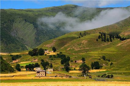 在金秋季節(jié),當(dāng)嬌滴滴的“水月江南”還在苦苦盼望燥熱早日離去時(shí),而明媚的秋色已經(jīng)在粗獷豪邁的甘孜大地上揮毫潑墨。