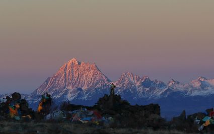 這是川藏公路高爾寺山埡口拍攝的夕陽下的雅拉雪山。