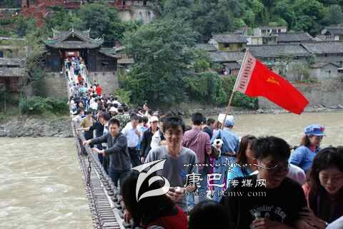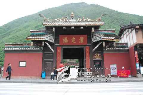 瀘定橋始建于清康熙44年 (1705年),次年五月竣工,康熙御筆題名“瀘定橋”。橋身共由13根鐵鏈組成,其中底鏈九根,扶手四根。橋東西兩端各有橋臺(tái)一座,西端觀音閣下有康熙題寫之《瀘定橋》石碑,橋東有《御制瀘定橋碑記》,瀘定橋是大渡河上第一座穩(wěn)固的大鐵索橋。1935年中國(guó)工農(nóng)紅軍晝夜行軍240里,英勇飛奪瀘定橋,打開了北上抗日的通道,“十三根鐵鏈托起了一個(gè)共和國(guó)”,毛澤東同志為此寫下了“大渡橋橫鐵索寒”的壯麗詩(shī)句,瀘定橋自此名揚(yáng)四海,成為中國(guó)紅色第一橋。為紀(jì)念紅軍飛奪瀘定橋這一壯舉和奇跡,于1985年在沙壩建立了“紅軍飛奪瀘定橋紀(jì)念館”和紀(jì)念碑。紅軍飛奪瀘定橋紀(jì)念碑由鄧小平同志題寫碑名,聶榮臻元帥題寫碑文。紅軍飛奪瀘定橋紀(jì)念館收集了紅軍飛奪瀘定橋時(shí)用過的門板、槍、炮、紅軍的旗幟、文件箱、信件證明、標(biāo)語、戰(zhàn)報(bào)、手雷、馬刀等珍貴文物110余件以及177幅歷史照片。瀘定橋是全國(guó)首批重點(diǎn)文物保護(hù)單位,是國(guó)家重點(diǎn)培育的 “紅色旅游區(qū)”、重點(diǎn)組織規(guī)劃的 “紅色旅游精品線路”和重點(diǎn)建設(shè)的 “紅色旅游經(jīng)典景區(qū)”。