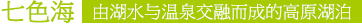 位于仙乃日與央邁勇之間,海拔4600米,在牛奶海的上方,翻上一片陡峭的山岡,再上升100 多米,在山脊上就能俯瞰五色海了,湖面呈圓形。面積0.7 公頃,水色變化無窮。五色海由于會(huì)在光的折射下,產(chǎn)生五種不同的顏色而得名。其藏名為“木底錯(cuò)”、“單增錯(cuò)”,是藏族聚居區(qū)著名的圣湖(佛經(jīng)中贊譽(yù)該湖與西藏羊卓雍錯(cuò)齊名),據(jù)傳能“返演歷史,預(yù)測未來”,有很多宗教上的傳說。