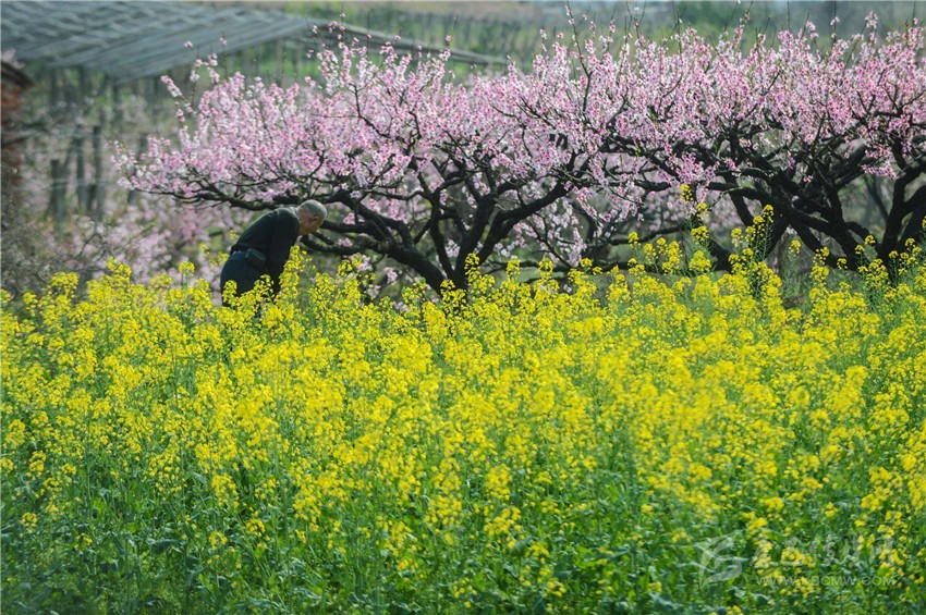 春天的杵坭鄉(xiāng)是濃墨重彩的,舉目四望,金黃燦爛的油菜花、潔白如雪的梨花和灼灼其華的桃花,鋪開(kāi)了一大片一大片的色塊。
