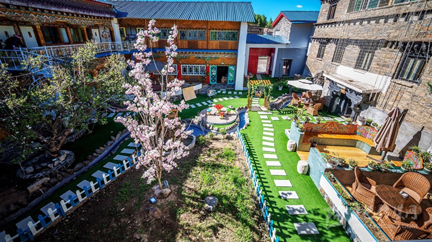 “我們的酒店主打‘民宿牌’。這座院子是稻城唯一一家四合院,始建于1961年,有著60多年歷史了,房子本身就是一個文化符號。”石雅琴告訴記者,酒店有32間房,基礎(chǔ)設(shè)施齊備,每間房間都有供氧設(shè)備、地暖、溫泉。但最讓石雅琴驕傲的是整個酒店酒店是結(jié)合稻城亞丁自然優(yōu)勢及獨特的藏文化而改造的特色文化鄉(xiāng)居,體現(xiàn)出濃郁的民宿味。記者看到,一扇精雕細(xì)琢的藏式大門透著濃濃民族味,走進(jìn)院子,小徑通幽,花木繁榮,綠植盎然。回廊通透,步入房間,稻城風(fēng)光躍然于墻,富有民族特色的床品更是讓你一下感受到藏文化的親切融入。