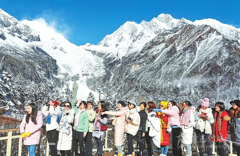 11月20日,游客在海螺溝賞冰雪美景。 川報記者 衡昌輝 攝