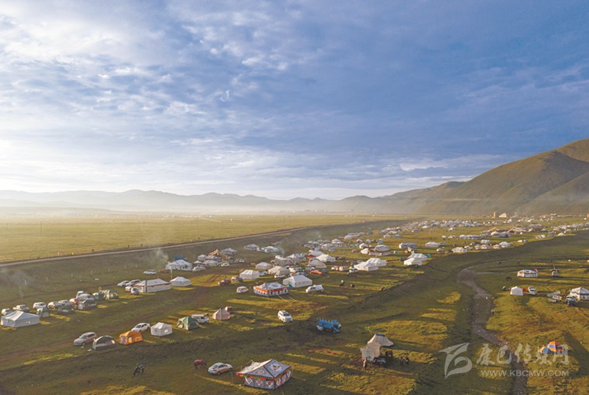 金馬草原以寬、平而著稱,藍(lán)天白云和雪山草地融為一體,明媚陽光和朵朵帳房風(fēng)景如畫。傳說金馬草原腳下有一匹金馬,又傳說在這里曾發(fā)現(xiàn)過一塊馬頭形金塊,后人為祈禱福祉而得名,碧草連天,駿馬奔騰,千里沃野,牛羊成群。景區(qū)主要以草原風(fēng)光和游牧部落風(fēng)情為主,加上宗教文化的融入,使金馬草原旅游區(qū)成為集觀光、娛樂、探秘、朝拜、餐飲等于一體的景區(qū),游客不僅可以享受淳厚濃郁的民族風(fēng)情,還可以體驗(yàn)獨(dú)具特色的游牧部落文化。