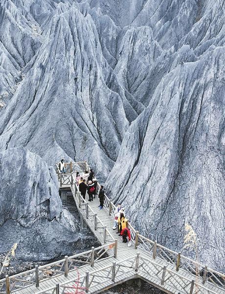 圖為11月27日,在道孚縣墨石公園,游客在素有異域星球之稱(chēng)的景區(qū)游玩。
