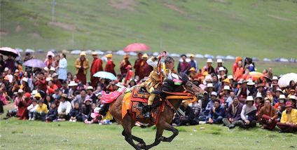 格桑花盛開(kāi) 牧民馬背上一顯身手