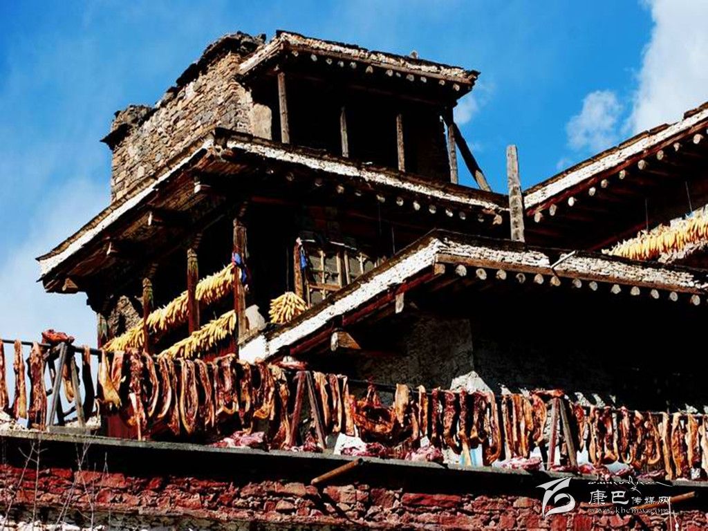 嘉絨藏族年到來之前幾天,丹巴藏寨格外耀眼美麗。寨房的主人們都依照傳統(tǒng)習俗,以當?shù)氐?ldquo;白泥巴”為主要原料,通過配方煎制成白色染料,精心涂染寨樓墻面,并用白灰在墻面上繪畫出天、地、日、月、星和各種動物圖案和宗教圖案,使整個藏寨披上潔白的盛裝。每年冬月12日就到了嘉絨藏族年大年三十,這天,山寨家家戶戶面滿柜、酒滿壇、水滿缸、柴滿棚,歡歡喜喜過迎新年;宰殺肥豬腌制香豬腿、制作豬膘,擺上酒席、跳上鍋莊祝福新年。