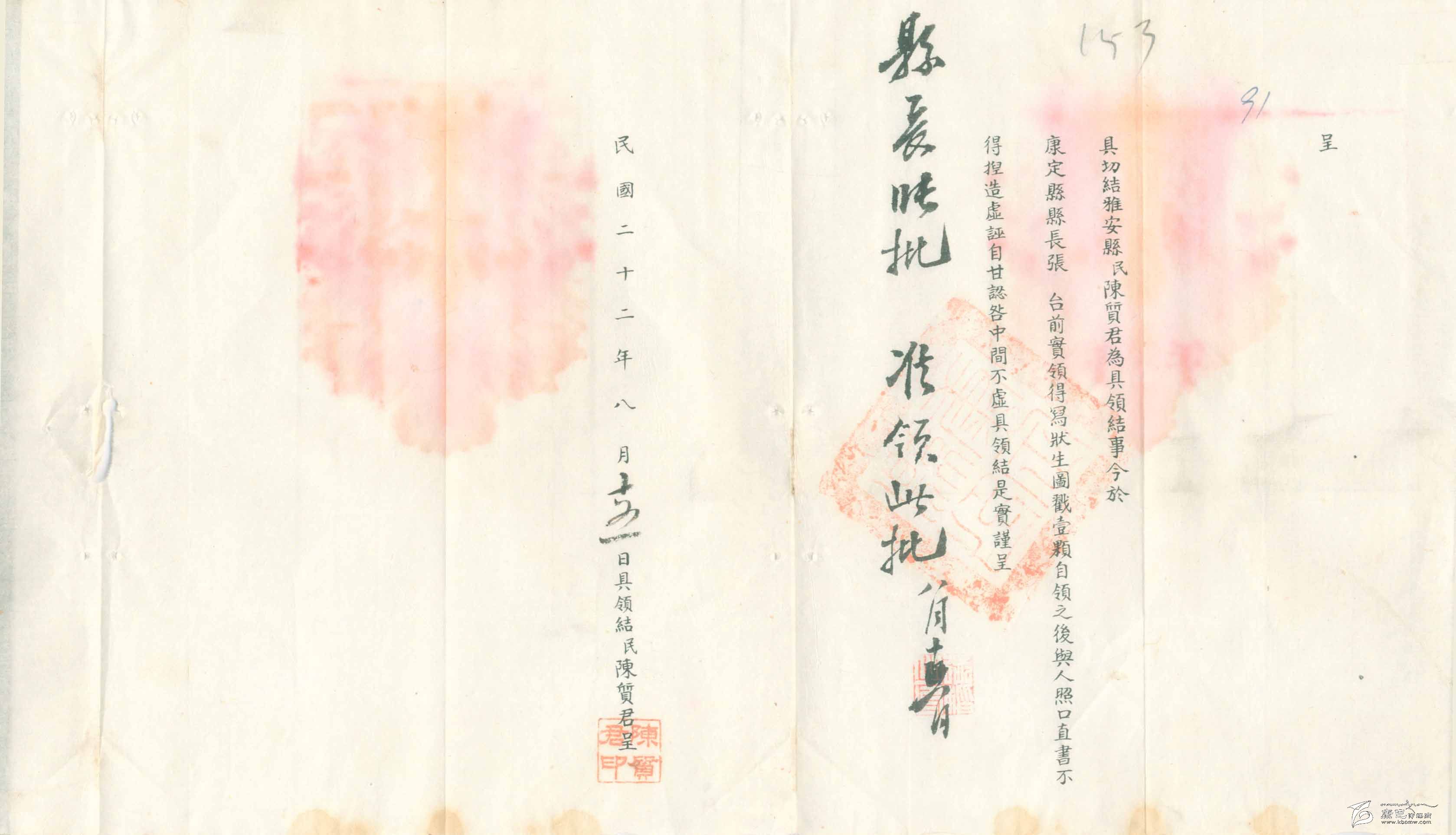 8月15日,陳質君領到了“戳記”(應是一枚印章),又向縣政府寫了“具結”(保證書)。對于他的考試估計到此結束,此人也就開始了他的“寫狀”生活。