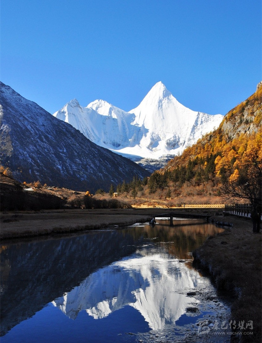 央邁勇,意為“文殊普薩”,海拔5958米,是“三怙主神山”的南峰;狀若一位斜倚在大榻上笑對世界的閑靜處子;在佛教中是智慧的化身。1928年,當(dāng)美國探險家約瑟夫·洛克先生在云南與稻城毗鄰的崇山峻嶺中遙望央邁勇時,一種被它圣潔、高貴的氣質(zhì)所折服的情感也隨之降臨了;他在日記中由衷感嘆,“央邁勇是我見到的世界上最美的山峰”。