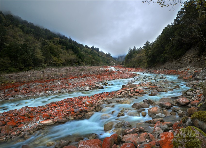 這里的景“色”是不可替代的,據(jù)說(shuō)紅石移到其他地方之后,就變色了,石頭上面的紅色苔蘚也不復(fù)存在,讓人不得不感嘆海螺溝的神奇與幻妙。