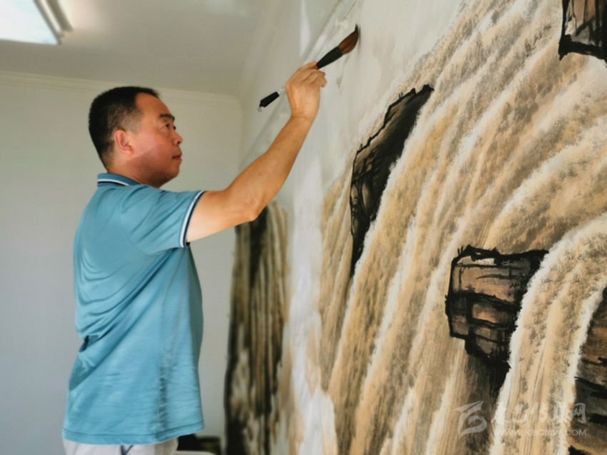 腳踏小步梯,左手端畫盤,右手執(zhí)畫筆,輕蘸盤中墨,落筆成風(fēng)雨。6月22日,攀枝花市裴宏波家中,裴宏波的作畫風(fēng)采,讓記者一飽眼福。