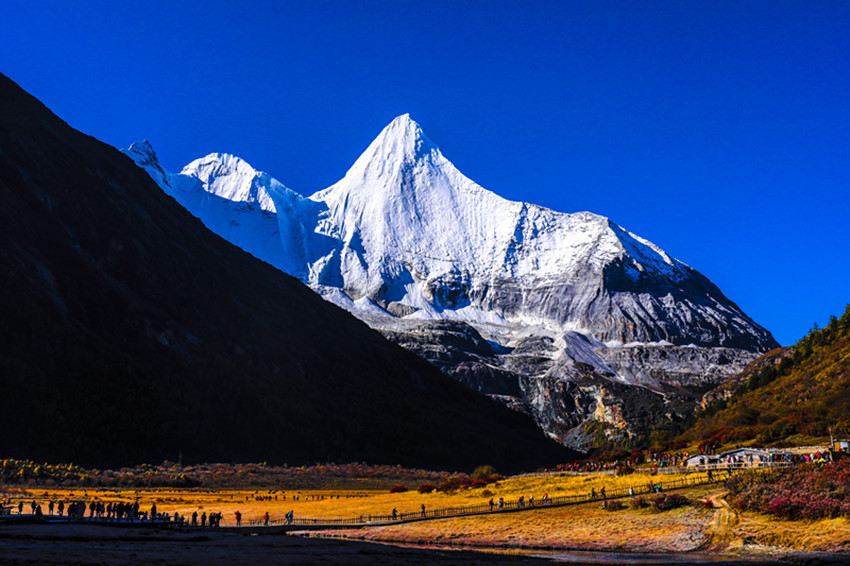 木雅民族的鍋莊跳起來了,穩(wěn)沉而有力,多情而悠長,在雪峰環(huán)繞的庇護下,“木雅辛康”(意為天堂般的木雅地方)歡樂的歌聲盈滿了整個山谷。