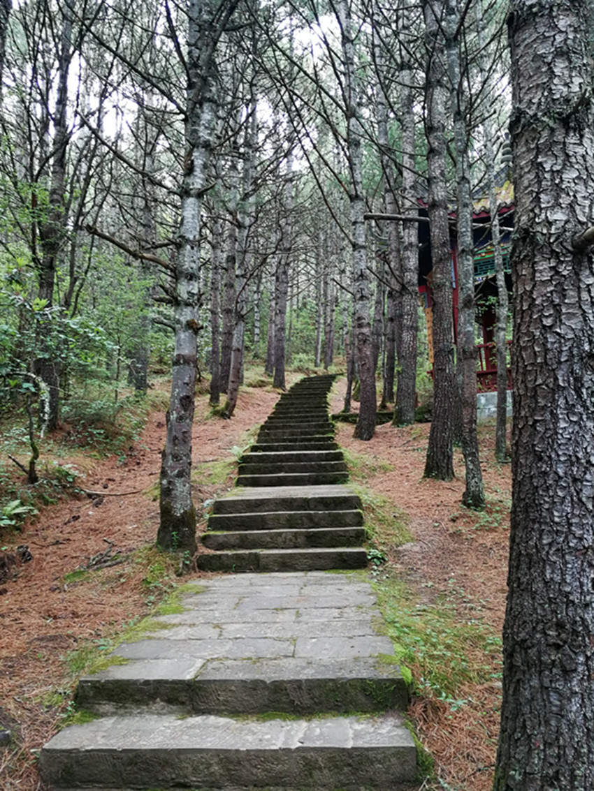中國(guó)民俗有“大年初一不竄門(mén)”,這一天,康定人很多都會(huì)去寺廟燒香敬佛。前年大年初一,我便去了觀音閣。進(jìn)門(mén)處,有專供燒紙錢(qián)的地方。再上階梯,有長(zhǎng)列的白色佛塔,進(jìn)寺就可點(diǎn)燈朝拜。出了觀音閣,我順道去找獅子巖。公路一側(cè)的堡坎已將原來(lái)的小徑斬?cái)?,翻上堡坎,小徑幾乎已沒(méi)了蹤跡。再仰頭望,獅子巖已是掩映在濃密的綠樹(shù)雜叢間。長(zhǎng)在右側(cè)的花椒樹(shù),已不見(jiàn)蹤影。幾株高大的白楊樹(shù)遮天蔽日,最大的都長(zhǎng)到盆口粗了?!鞍倌陿?shù)木”,這無(wú)疑還是當(dāng)年那幾棵白楊樹(shù)了。我艱難地鉆過(guò)荒叢爬到獅子巖腳下,那“祭祀臺(tái)”上如過(guò)去一樣擺放有貢品,旁邊和樹(shù)枝上掛有經(jīng)幡,但周?chē)詻](méi)有一絲煙熏火燎過(guò)的痕跡。