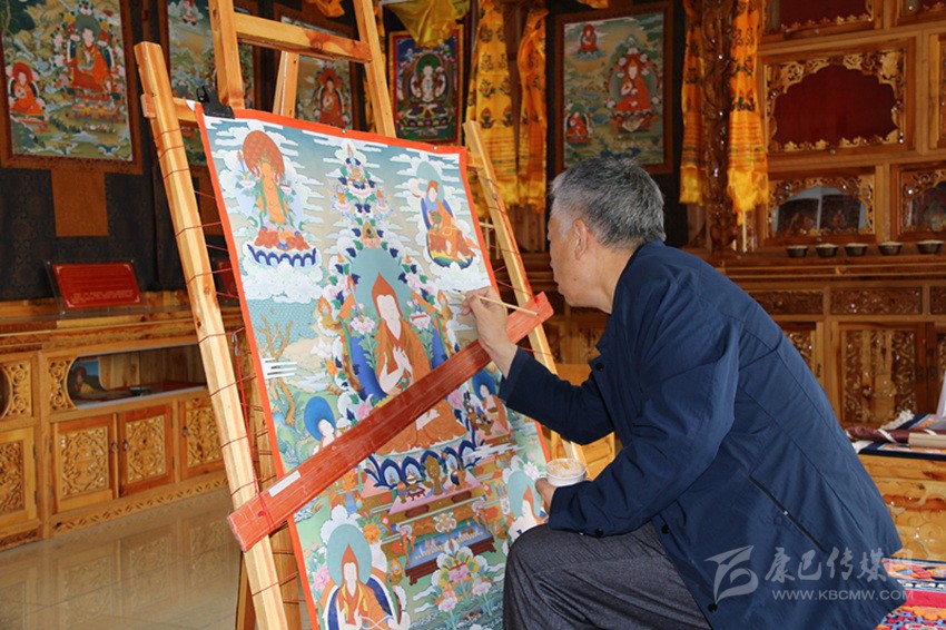 顏登澤仁,我州國(guó)家級(jí)嘎瑪噶孜唐卡畫派傳承人、省藏校教師。2017年3月,北京大學(xué)文化資源研究中心、中國(guó)非物質(zhì)文化遺產(chǎn)推廣中心組織他與另外八位唐卡大師及一位顏料大師共同完成《十明圖》唐卡創(chuàng)作。截至今日,距離他完成兩幅唐卡創(chuàng)作剛好一個(gè)月。