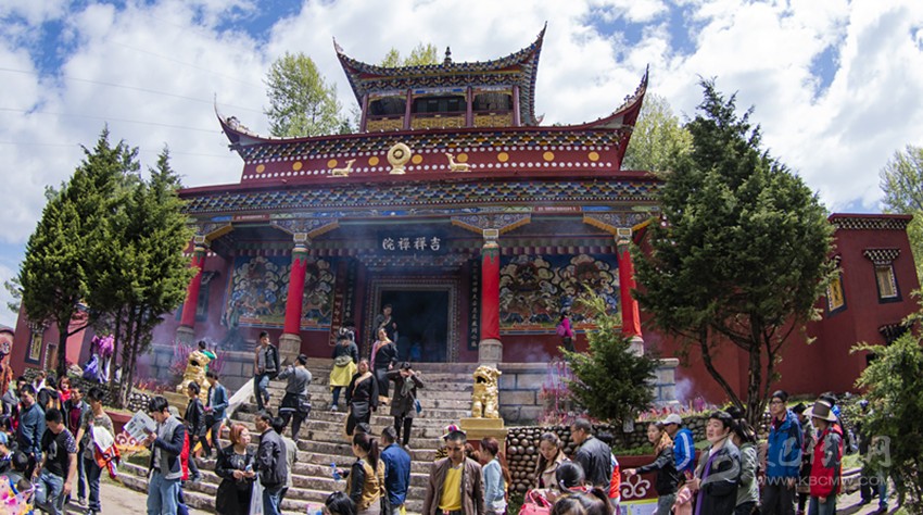走下石欄,是一處曲廊環(huán)繞的圓形跑馬坪,坪中心為表演場(chǎng)地,外沿是憩息迴廊,坪的上方是一座用水泥澆鑄的藏族騎士策馬騰空的雕像,象征藏族入民揚(yáng)鞭催馬向四化路上飛奔。繞過(guò)跑馬坪,便是浴佛池”,據(jù)傳“四月八”這天是佛祖釋迦牟尼的生辰,有九龍吐水為之沐浴,故稱此日為“浴佛節(jié)”。