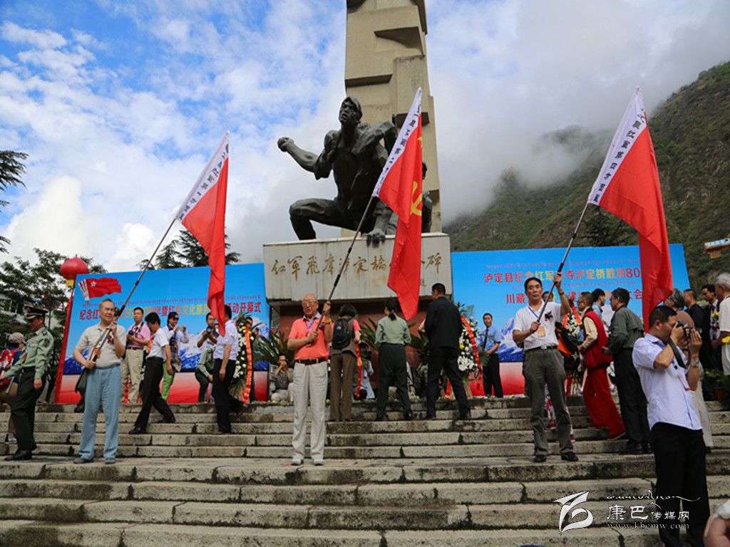 參加紀(jì)念活動(dòng)的有:周恩來、朱德、劉伯承、賀龍、楊成武、張國華、天寶等老一輩革命家的親屬代表,原第十八軍官兵代表,飛奪瀘定橋二十二勇士親屬代表;中國進(jìn)出口銀行四川分行和捐贈(zèng)“紅軍長征遺跡保護(hù)恢復(fù)建設(shè)”項(xiàng)目的部分企業(yè)代表;中央黨史研究室、中國軍事科學(xué)院、中國國防大學(xué)、省委黨史研究室、省社科院、四川師范大學(xué)從事紅軍長征及川藏公路建設(shè)歷史研究的專家學(xué)者;四川師范大學(xué)等對(duì)口援助瀘定縣的省市、單位代表;成都軍區(qū)川藏兵站部領(lǐng)導(dǎo);州委、州人大、州政府、州政協(xié)、甘孜軍分區(qū)和州級(jí)機(jī)關(guān)各部門、州內(nèi)部分縣(局)的負(fù)責(zé)同志;石棉縣、滎經(jīng)縣、漢源縣、冕寧縣等友鄰縣領(lǐng)導(dǎo);參加大會(huì)的還有瀘定縣干部代表和駐瀘定部隊(duì)、老干部、州內(nèi)各縣駐瀘協(xié)會(huì)、群眾代表。