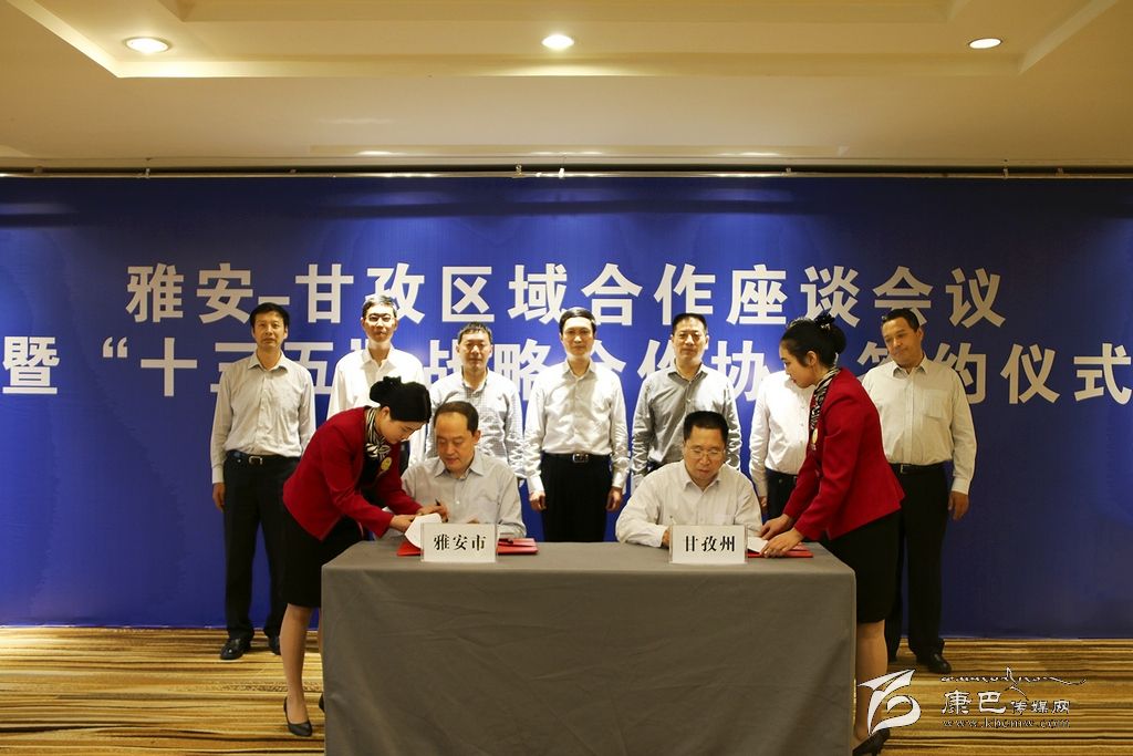 省政府副省長、雅安市委書記葉壯出席儀式并作重要講話。州委書記劉成鳴,雅安市委副書記、市政府市長蘭開馳分別致辭。蘭開馳與州委常委、常務(wù)副州長陳忠義代表兩地共同簽署合作協(xié)議。雅安市委常委、市政府常務(wù)副市長黃劍東主持儀式。