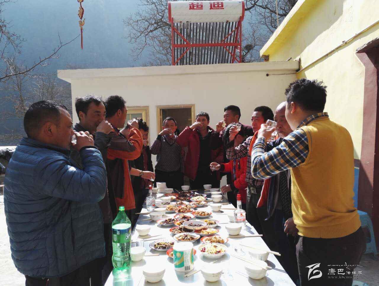 “過(guò)年了,讓我們一起為新年干杯,為大家脫貧致富干杯,為年年都有好收成干杯!”