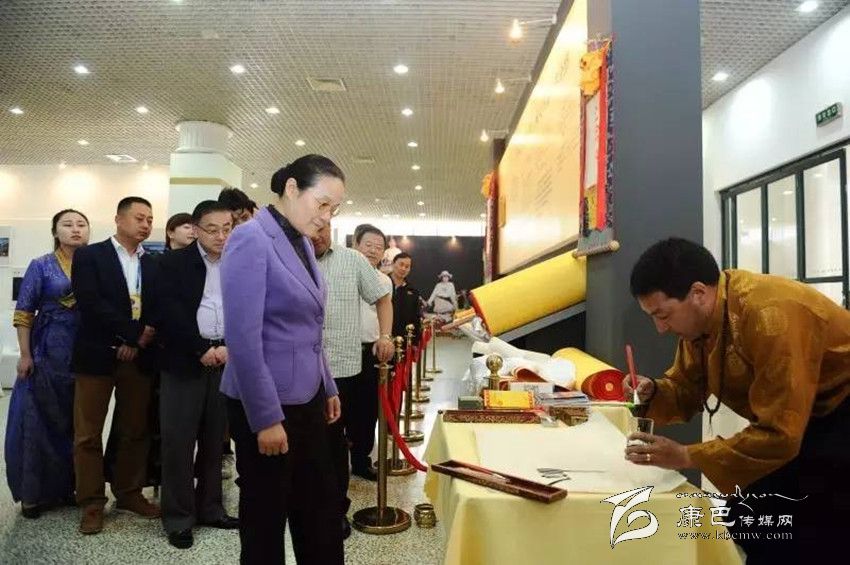 在展覽中心,趙雯在州政府副州長葛寧等的陪同下,觀看了甘孜旅游宣傳片,參觀了甘孜旅游圖片展、藏傳佛教宮廷精品文物展、“藏藝通”旅游商品展和藏文書法展,仔細(xì)聽取講解介紹,對(duì)甘孜州舉辦此次活動(dòng)給予了充分肯定。趙雯還興致勃勃地觀看了四川省級(jí)藏文書法傳承人、著名的藏文書法家巴松鄧珠現(xiàn)場藏文書法表演,品嘗了甘孜州康定藍(lán)逸高原食品有限公司的高原特色產(chǎn)品。