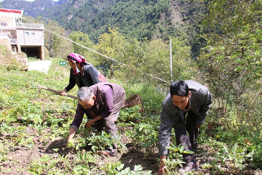 丹巴縣半扇門(mén)鄉(xiāng)大邑村駐村第一書(shū)記與村民共同勞作。