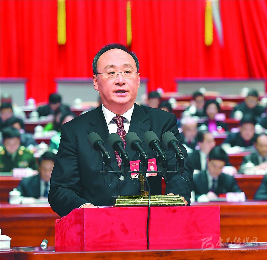 省長尹力代表省人民政府作工作報告。省政協(xié)主席柯尊平、西部戰(zhàn)區(qū)空軍司令員戰(zhàn)厚順出席大會并在主席臺就座。