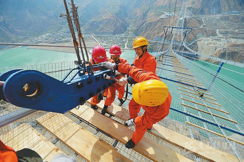 作為“最難建”的藏區(qū)高速,雅康高速公路從四川盆地向青藏高原地帶攀升,短短135公里的長(zhǎng)度,海拔高差近2000米。同樣,瀘定大渡河興康特大橋的建設(shè)也是一個(gè)不斷創(chuàng)新、不斷刷新歷史紀(jì)錄的過(guò)程。