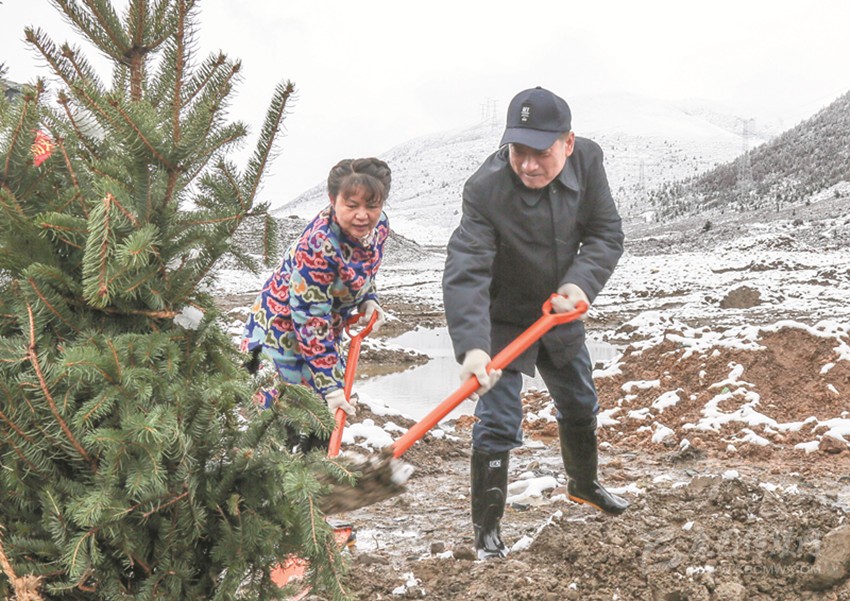 在海拔3800米的呷巴鄉(xiāng)植樹點,劉成鳴、向秋、包建華與其他州領(lǐng)導一道拿起鐵鍬與機關(guān)干部、部隊官兵和學生們一起植樹。挖坑、扶苗、填土、澆水……大家合力栽下楊柳、高山柳等一棵棵適合當?shù)厣L的樹苗。植樹過程中,劉成鳴還不時詢問本次義務植樹活動的栽種面積、樹木品種及成活率等情況。在與同學們一起植樹時,劉成鳴勉勵同學們從小樹立保護環(huán)境、愛綠護綠意識,多做有意義的事,用勤勞的雙手建設(shè)美好家園,要像今天種下的一棵棵樹苗一樣,健康茁壯成長。