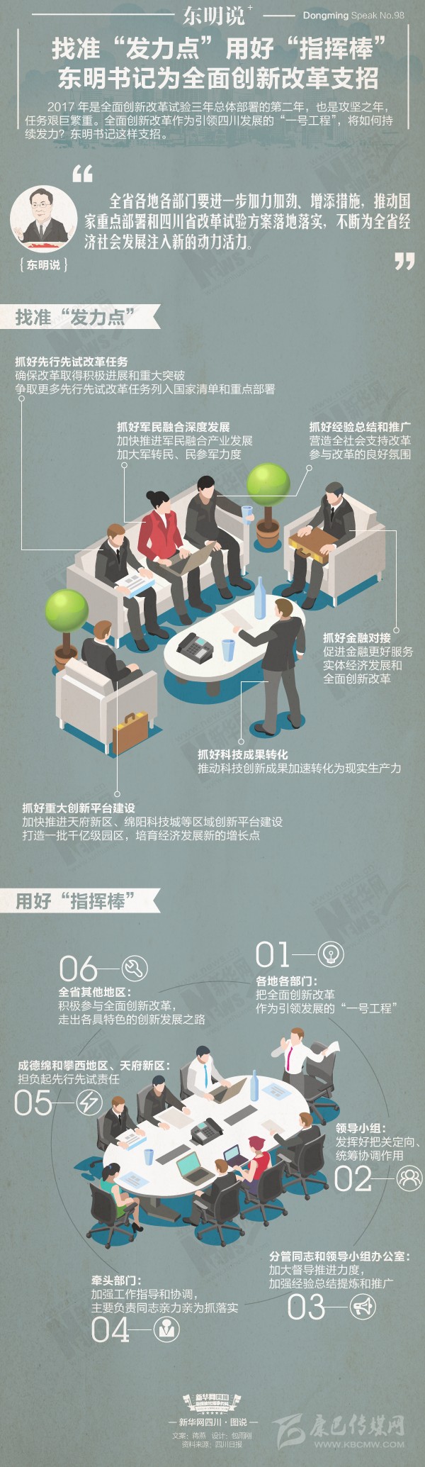 2017年是全面創(chuàng)新改革試驗(yàn)三年總體部署的第二年,也是攻堅(jiān)之年,任務(wù)艱巨繁重。全面創(chuàng)新改革作為引領(lǐng)四川發(fā)展的“一號(hào)工程”,將如何持續(xù)發(fā)力?王東明書(shū)記這樣支招。