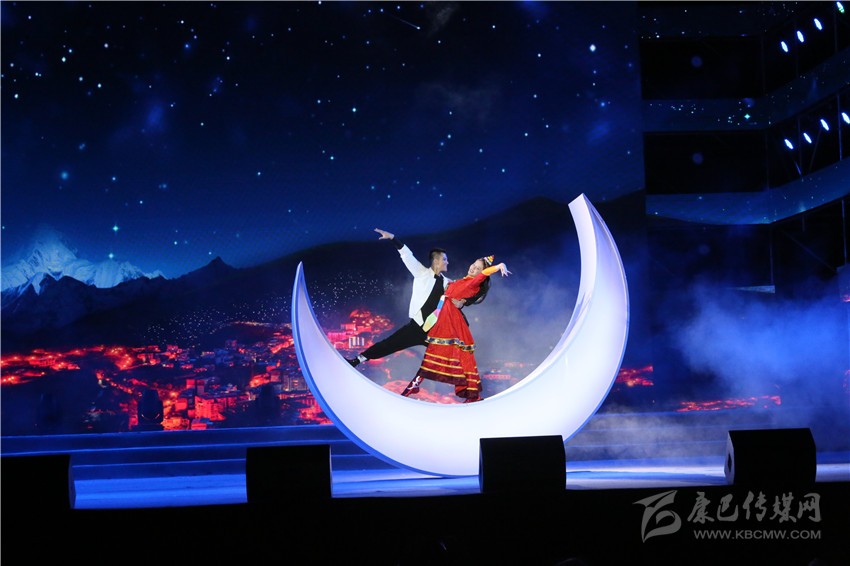 說唱《康定情歌》并配以街舞是本劇目對《康定情歌》演繹形式的大膽創(chuàng)新。演出中,幾名穿著時尚、朝氣蓬勃的青年,用歡快的節(jié)奏、靈活的動作,展現(xiàn)了《康定情歌》的深厚內(nèi)涵,也宣傳了康定的城市特質(zhì)。獨具一格的表演讓人耳目一新、深受感染,體育場內(nèi)歡呼不斷、吶喊震天,觀眾的熱情與演員的激情互相激蕩,久久不絕。