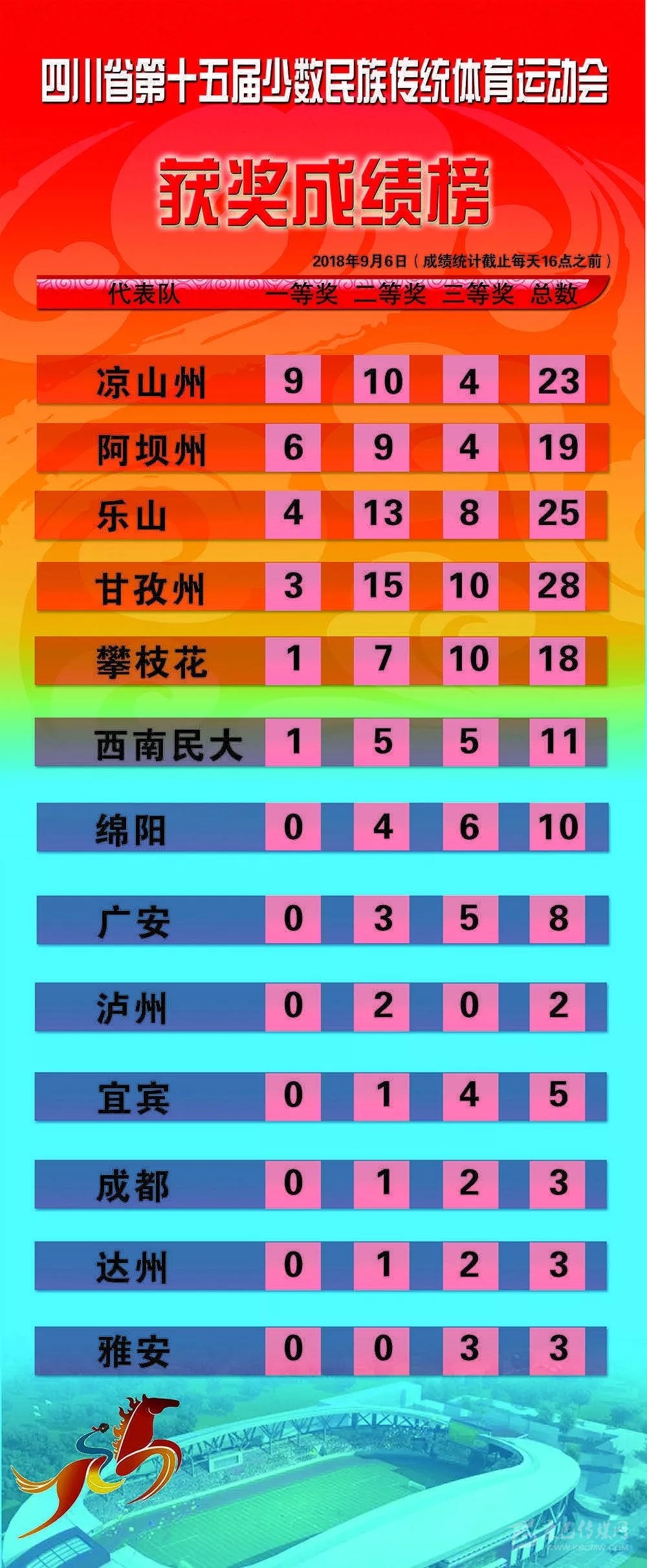 四川省第十五屆少數(shù)民族傳統(tǒng)體育運(yùn)動會獲獎成績榜