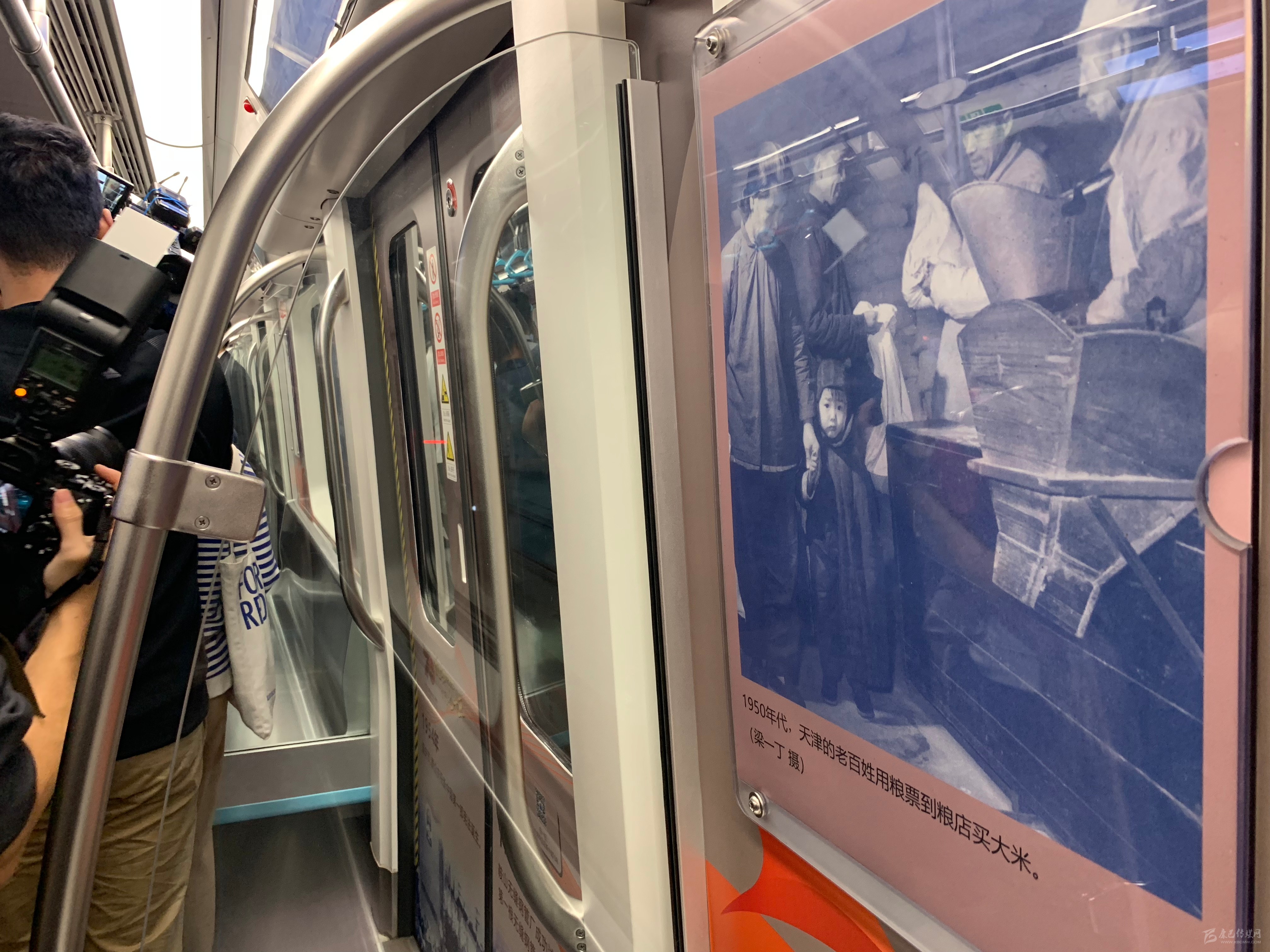 這趟主題列車由新華通訊社與成都軌道交通集團(tuán)、四川省建川博物館、中車集團(tuán)成都公司共同打造。主辦方精心收集、挑選了1949-2019年的300多張重要?dú)v史照片和文物復(fù)印件,通過(guò)時(shí)間長(zhǎng)廊的設(shè)計(jì),將新中國(guó),特別是四川、成都70年的奮斗史和普通人衣食住行的巨大變化逐年呈現(xiàn)。主題列車上還設(shè)置了多處二維碼,掃碼即可進(jìn)入主辦方開(kāi)設(shè)的更多專題,把“流動(dòng)博物館”延伸到“網(wǎng)絡(luò)博物館”。