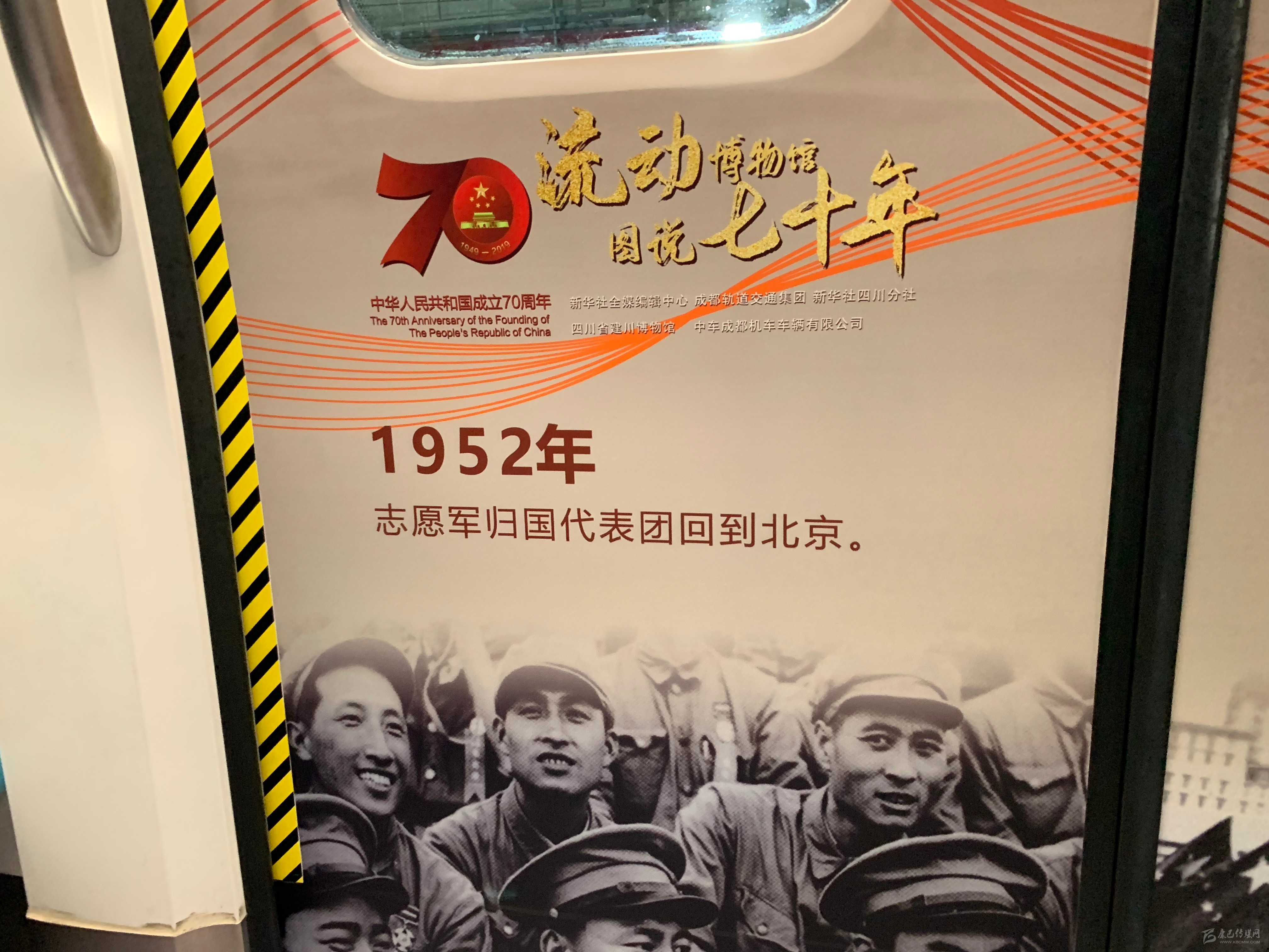 為慶祝中華人民共和國(guó)成立70周年,9月18日,“流動(dòng)博物館”號(hào)主題列車在成都地鐵7號(hào)線(環(huán)線)正式上線?!傲鲃?dòng)博物館”以精心挑選的老照片、文物復(fù)印件和全新原創(chuàng)愛(ài)國(guó)歌曲伴隨乘客回顧新中國(guó)70年光輝歲月,見(jiàn)證新中國(guó)70年來(lái)的歷史巨變。