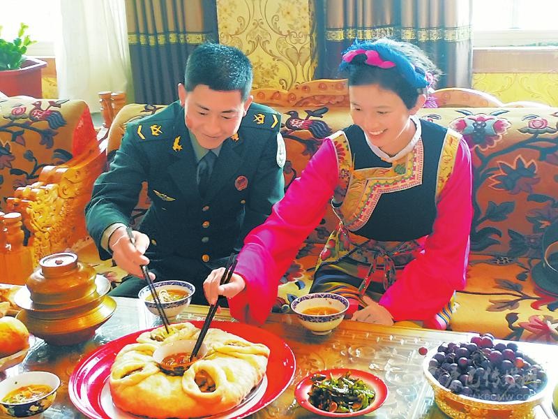 在中國文化中,吃面自古以來就有福壽延綿的美好寓意。圖為10月2日,駐甘孜巴塘官兵與夏邛鎮(zhèn)群眾同吃巴塘冒面,為祖國慶生,祝愿祖國繁榮昌盛、國泰民安。 華西都市報-封面新聞記者 田雪皎 攝