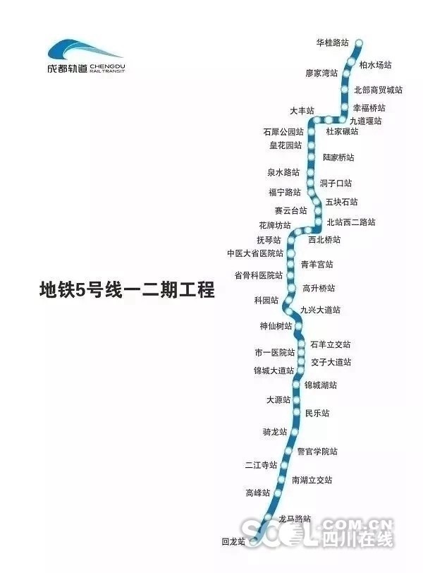 北起新都區(qū)香城大道南側(cè)華桂路站,向南止于回龍站。線路全長49.02公里,共設(shè)車站41座,其中地下站36座,高架站5座。