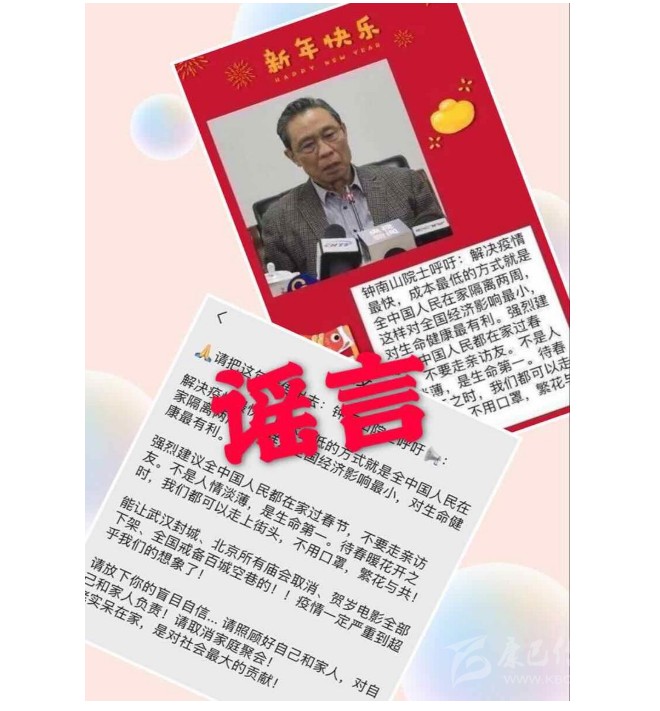 ▼至于網(wǎng)傳鐘南山院士也已被傳染,更是無稽之談!
