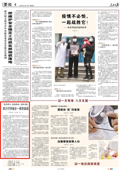 今天,人民日報刊發(fā)題為《黨員帶頭 依靠群眾 齊抓齊防——四川打好城鄉(xiāng)一體防疫戰(zhàn)》的文章,聚焦四川依法防治、聯(lián)防聯(lián)控、科學防治疫情,進一步織密疫情防控網(wǎng)。