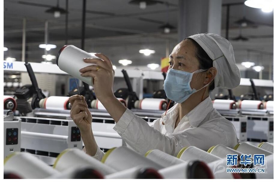 4月19日,在蘆山縣一家紡織企業(yè),工人在檢查產(chǎn)品生產(chǎn)情況。