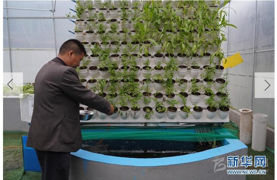 4月19日,在蘆山縣飛仙關(guān)鎮(zhèn)禾茂農(nóng)業(yè)園區(qū),工作人員給魚喂食。這里采取“魚菜共生”的模式,養(yǎng)魚和種菜的水通過過濾系統(tǒng)實現(xiàn)循環(huán)利用。