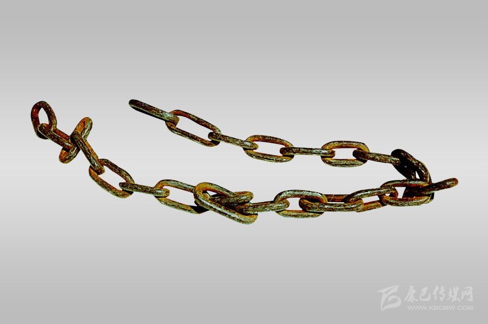 當(dāng)時瀘定橋上的鐵索鏈實(shí)物。