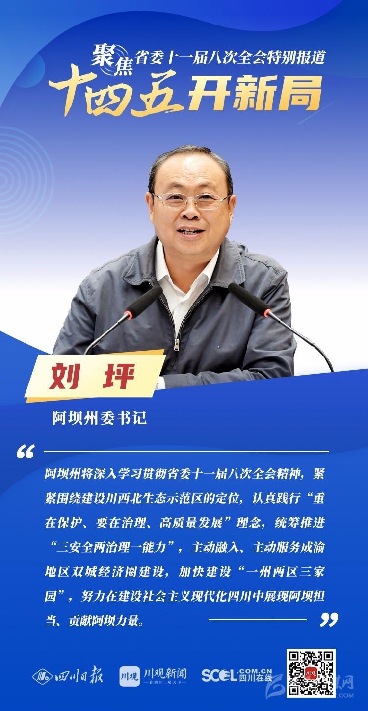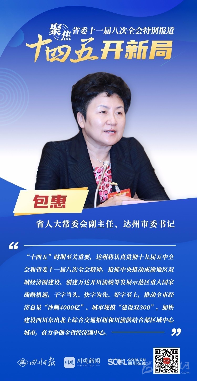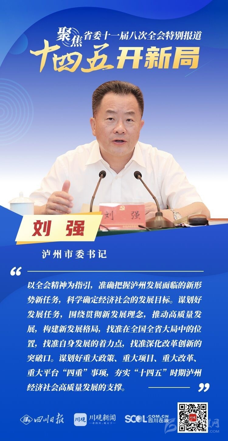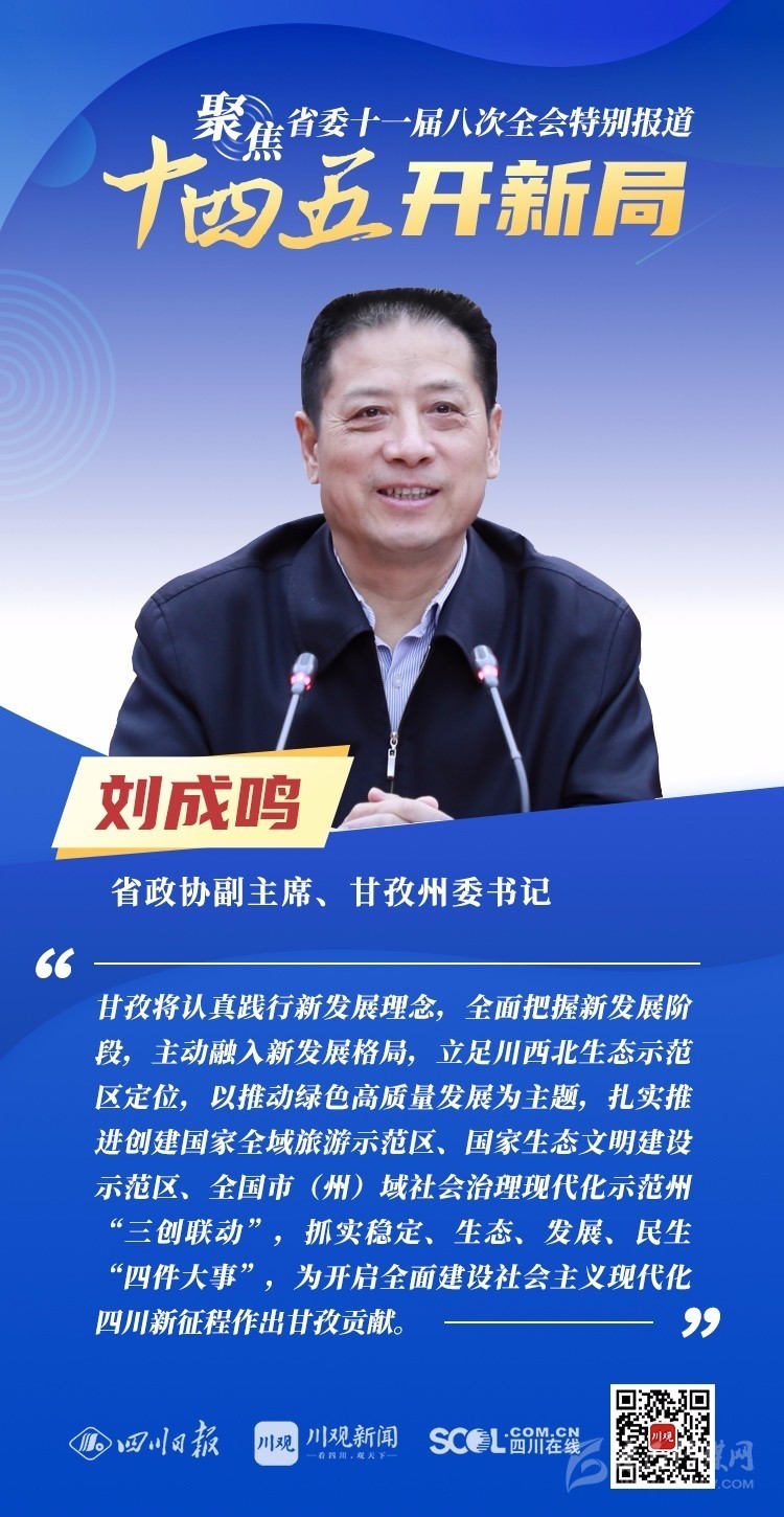 12月3日,中共四川省委十一屆八次全會在成都開幕,全會將深入學習貫徹黨的十九屆五中全會精神,審議《中共四川省委關(guān)于制定四川省國民經(jīng)濟和社會發(fā)展第十四個五年規(guī)劃和二〇三五年遠景目標的建議(討論稿)》,為未來5年乃至更長時期四川發(fā)展謀劃新藍圖 。