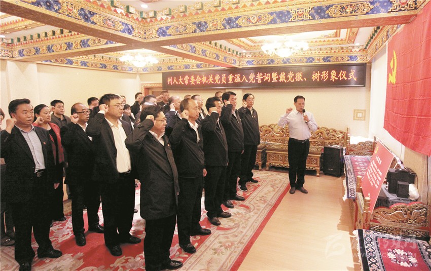 州人大常委會機關(guān)黨員重溫入黨誓詞。