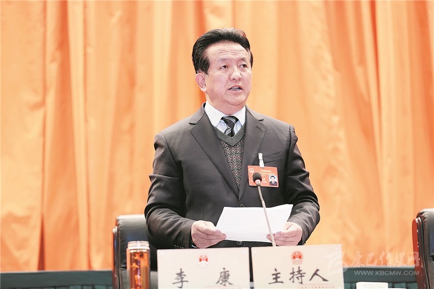 州人大常委會主任李康在州十二屆人大第四次會議上。