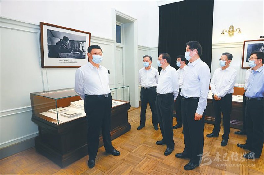 六月二十五日,中共中央政治局就用好紅色資源、賡續(xù)紅色血脈舉行第三十一次集體學(xué)習(xí)。這次集體學(xué)習(xí)采取參觀和討論相結(jié)合的形式,這是習(xí)近平、李克強、栗戰(zhàn)書、汪洋、王滬寧、趙樂際、韓正等在中南海豐澤園參觀毛澤東同志故居。新華社記者鞠鵬攝